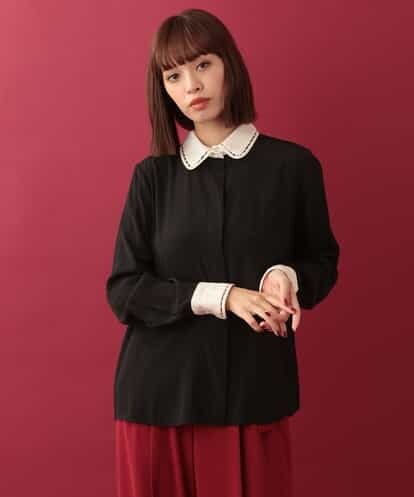 バイカラー仕立ての可愛らしく、クラシックなデザインが魅力のシフォンブラウス。衿と袖口の縁に施したレースディテールがさりげないアクセントに。比翼仕立ての前立がすっきりとした着こなしを叶えます。フォーマルなシーンからパーテーシーンまで幅広く活躍。model:H164 B82 W59 H88 着用サイズ:M
