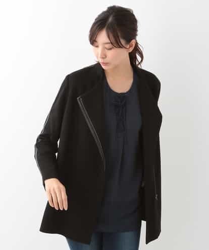 【洗える】合皮トリミングジップジャケット ブラック 40