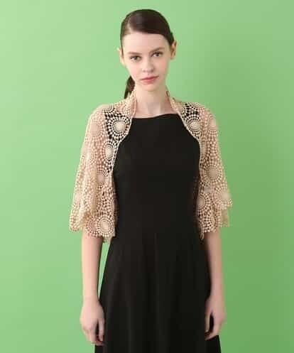 ヴィンテージライクレースを使用した上品なボレロ。大ぶりのモチーフを施したレースは存在感があり、シンプルなスタイルに合わせるだけでもぐっと華やかな印象に。ボレロとしてはもちろん、ストールとして肩に羽織ったり、ブローチと合わせたりするのもお勧めです。model:H170 B80 W58 H81 着用サイズ:M