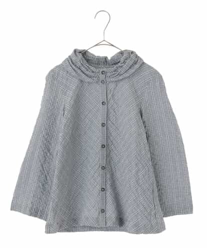 [ジャンニロジュディチェSサイズ]リップル加工を施した凹凸感とストライプのコントラストが印象的なデザインブラウス。バイヤス地にカットされたフロントは柔らかく、エレガントなひだを表現してくれます。フロントのギャザーネックなど、柄とディティールのコントラストがハイセンスな一枚に仕上がっています。