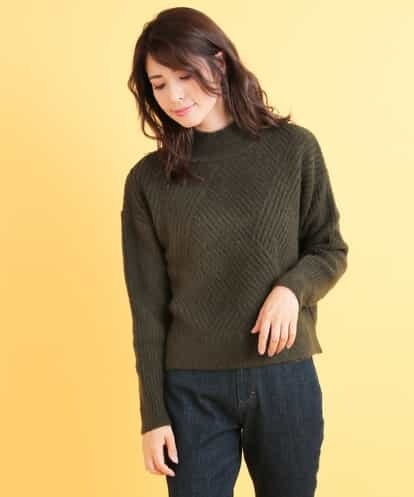 [ドラマ着用]編み地切り替えニット カーキ 42