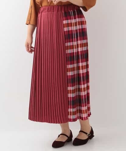 光沢のあるプレーンな素材と、トラッドなチェック柄を組み合わせたスカートです。アコーディオンプリーツを施した広がりのあるデザインに、二種類の表情の違うテキスタイルのコンビネーションがスタイリングを盛り上げてくれる一着です。上品な丈感のバランスの良さも魅力のスカートです。※裏地付き
