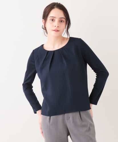 【洗濯機で洗える】シャドーチェックカットソー ネイビー 40