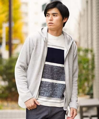 ◆組織感のあるきれいめ素材を使用したジップアップパーカー◆凹凸感がある接結素材を使用したキレイめ見えジップアップパーカー。裏毛素材にはない組織感のある素材を使用したことによりきれいめで大人っぽいパーカーに仕上がりました。カジュアル合わせはもちろんキレイめコートなどのインナーとしてもおすすめです。