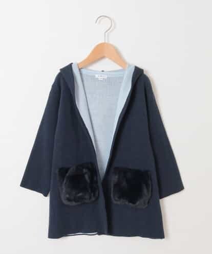 [140-150]フェイクファーコーディガン ネイビー 150