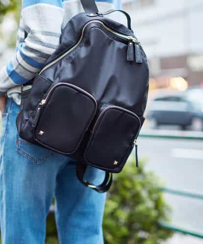 大人気リュックサックがWEB限定にて再登場! 定番のブラック、ネイビーに加え、合成皮革素材の新色が新たに追加しました。 ■WEBでしか買えない人気リュックサック■ 毎回ご好評いただいているスタッズナイロンリュック。1番人気の【ブラック】、やや濃いめの色合いが大人っぽい【ネイビー】、そして合成皮革素材を使用した【ブラックその他】の3色がWEB限定にて登場! ■スタッズ使いが光るシンプルリュック■ 余計な飾りをつけずにシンプルなデザインに仕上げたリュックサック。さりげなく入ったスクエアのスタッズがポイント。シンプルなデザインはどんなスタイリングにも合わせやすいリュックです。 ■ポケット多くて容量も抜群■ 外見や中側のポケットはもちろん、両サイド、背中部分にもポケットがついており収納力抜群!A4サイズやPCもしっかり入るサイズ感は、お仕事やご旅行にもぴったりです。 ■シーズンレスなナイロン素材に、こなれ感のある合皮素材■ シーズン問わず合わせやすい軽くてやわらかい定番のナイロン素材に加え、こなれた大人っぽさを演出してくれる合皮素材が新たに登場!ジップや持ち手部分はどの色も共通で合成皮革を使用しているので、カジュアルになりすぎずに大人な印象に。 屋外での撮影は色味が多少異なる場合がございます。商品の色味は、スタジオ撮影の画像をご参照ください。