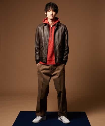 2018-2019 Autum&Winter “Leather Jacket”(Type A-2) 今年もやってきました。 ラムレザーを使用した、高級レザージャケット。 今年は、モデルチェンジ、そして新色ブラウンもご用意しました。 今年のモデルはミリタリーの定番”A-2フライトジャケット”をイメージ。 男らしく、無骨なイメージのA2ジャケットを、MKオムではキレイな大人目イメージに。 すっきりとしたシルエットと、高級感ある表面質感は、 カジュアルな一面と、大人目なクラシックレザースタイルも! フロントにはフラップ付きの少し大き目ポケット、 袖口にはリブがあることで、すっきり好印象なスタイルに。 ブラックパンツや、細めのパンツや 少しルーズなワイドパンツと合わせても◎ ※多少の仕様変更がある場合がございます。