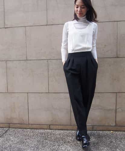 <数量限定アイテム>トリアセテート混のしなやかなドレープが美しいトップスと、ウール混の程良いハリのテキスタイルで仕立てたボトムスを組み合わせたオールインワン。対象的な目を惹くツートーンカラーでコーディネイトしたデザインに、切り替えにあしらったタックが上品なドレープを魅せてくれる一着です。リボンがアクセントになったバックは、大胆に開けた女性らしさ溢れる仕様になっています。※バックファスナーmodel:H170 B81 W59 H88 着用サイズ:M
