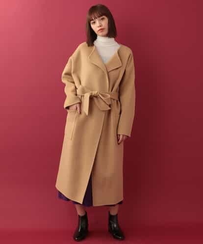 装飾のないシンプルなデザインに上質なテキスタイルが高級感溢れるロングコート。インナートップを選ばないノーカラーデザインはどんなスタイルにも相性の良い一枚です。ドロップショルダーのゆったりとしたデザインが今年らしい抜け感のある着こなしに。ウエストをベルトでマークしたりと、着こなしでシルエットアレンジ出来るのもポイントです。model:H164 B82 W59 H88 着用サイズ:M