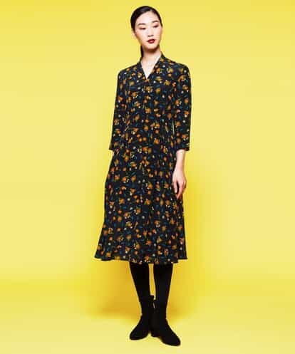 シルク100%のプリントドレス。肌触りがなめらかなシルクは、イージーケアができるシーズンレスな素材。凛とした女性を表した小花柄のプリントは、ウエストを絞ることで、すっきりとしたシルエットとなり、上品な印象を惹きたてます。同じテキスタイルのブラウス 【GBBAI52390】もおすすめです。※前ファスナー、裏地付きmodel:H173 B80 W58 H84 着用サイズ:M