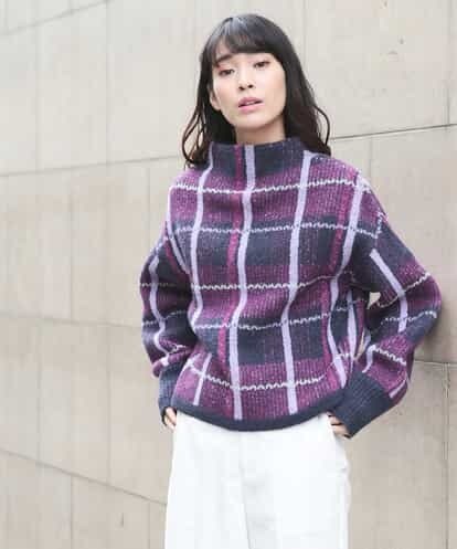 デザインチェックニットプルオーバー ダークパープル 38