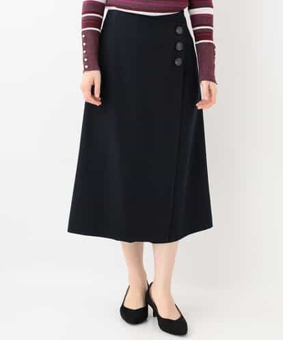レーヨン混の滑らかなストレッチツイルで仕立てたパンツです。フロントは大きなボタンが目を惹くラップデザインがポイントになっています。ミディ丈のワイドガウチョに、フロントはスカート見せ出来る一着です。※裏地付き、サイドファスナーmodel:H158 B77 W59 H85 着用サイズ:M