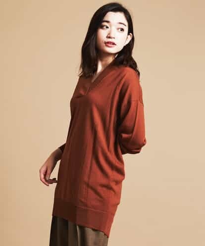 Vネックロングウールニット キャメル 38