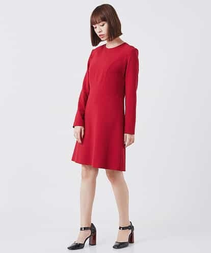 タラジャーモン定番素材のTOILE DOUBLE(ダブルクロス)を使用したステッチワンピース。 伸縮性のあるスポンジ?なタッチが特徴の記事は皺になりにくく、オールシーズン着用していただけるデイリー・フォーマル問わない万能素材です。 裏地がなくても透けることなく着ていただけるのも特徴です。 イレギュラーに切り替えたプリンセスラインがTARA JARMONの設計のこだわりを魅せてくれる一着です。切り替えにはデザインステッチを施し目を惹くアクセントに。レトロシックなシルエットもポイントです。※バックファスナー model:H164 B82 W59 H88 着用サイズ:M