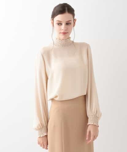 シルクの醸し出す上質なテキスタイルの質感と、衿とカフスに施したシャーリングが魅せるコントラストが絶妙にマッチした一着。プルオーバータイプのすっきりとしたボディに、女性らしさ溢れるシャーリングデザインが美しさを最大限に引き出してくれるアイテムです。わずかな透け感を活かし、お手持ちのインナーとの組み合わせでも違った雰囲気を楽しめます。※インナーキャミソール付きmodel:H170 B80 W58 H81 着用サイズ:M