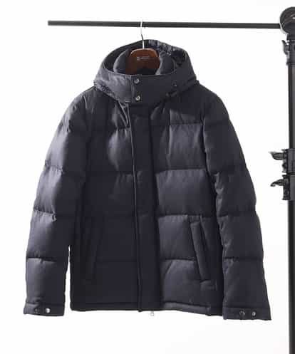 <こだわりの素材> ウール調合繊生地のクラシックなヘリンボン柄を採用した素材を使用。 表面を微起毛する事で手触り良くウォーム感のある風合いに仕上げました。 <こだわりのデザイン、機能> ?フード着脱でスタンドとしても2WAYで着回せます。 ?本体のダウン抑えステッチをフラット柄にする事でカジュアルからきれいめにも着まわせるデザインです。 ?さらに両脇パーツには身頃とは異なるタテステッチを施す事で正面から見た時のダウンブルゾン特有である「着膨れ感」がなく、シャープなシルエットが楽しめます。 ?裏地には光沢のある滑りの良い素材を使用し、軽く羽織りやすい仕様にしました。 ?裾にはスピンドルを配し、裾からの冷風を防ぐ仕様にしました。 シンプルなデザインで、素材とシルエットの良さを、より一層お楽しみいただけます。 冬のメインアウターに是非オススメしたい1着。