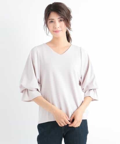 ◆トレンドのボリュームシルエット◆さらっとした素材が心地良いVネックのプルオーバー。袖口はタックを寄せてフレアにしたデザインがポイントです。後ろ身頃にもタックを入れて、ゆったりしたシルエットになっているのでテーパードやワイドパンツにも合わせやすい1枚です。※34(XSサイズ)・42(XLサイズ)はWEB・一部限定店舗での販売です。