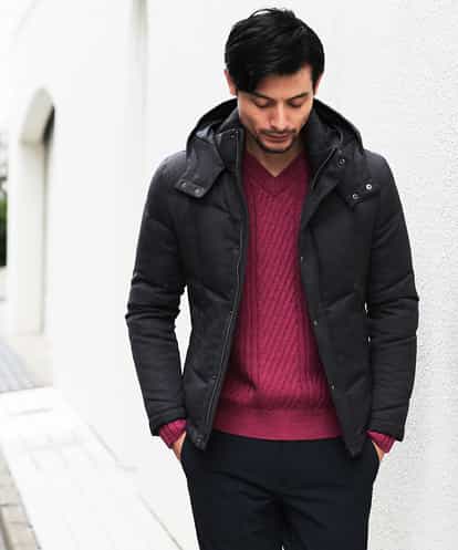 リッチでカジュアルな時間を過ごす、他には無い一着 ウール調の豊かな表情が特徴のダウンブルゾン 軽くて、シワになり難く、保温性があり、イージーケア性を兼ね備えた素材 WOOL LIKE POLYESETER のFORMOZAシリーズのポップサック組織素材 ウール調の表情がある合繊素材です。 *脇のダウン押さえステッチをタテ方向にし、スッキリしたシルエットにしたダウンブルゾン *フードはファスナーでの脱着が可能。フードを外してスッキリスタンドのブルゾンスタイル *カジュアルで活躍するアクティブなショート着丈設定 *脇のフラップ付きポケットの袋布には、 起毛トリコット素材を使用し、冬の寒さを和らげます。