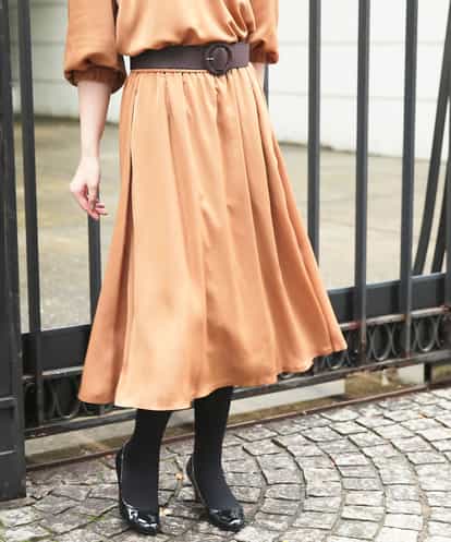 【セットアップ対応/洗える】パウダーサテンギャザーフレアスカート(ネイビー・キャメル・ライトグレー) キャメル 38