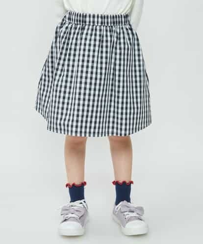 [140-150]ギンガムチェックギャザースカート ブラック 150
