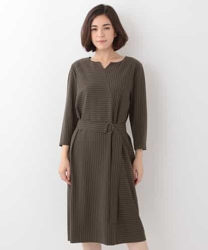 【洗える】ピンストライプIラインワンピース カーキ 38