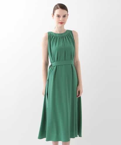シックな微光沢とドレープの美しいノースリーブドレス。ラウンドの襟元とウエストベルトがシンプルなシルエットの中でもポイント。落ち感のある素材は縦にスッキリと見せてくれ、スカート部分のドレープが際立つ1着です。ウエストベルトを外してもIラインのシルエットが美しくでるドレスです。バックファスナーmodel:H170 B80 W58 H81 着用サイズ:M ※オレンジの画像はサンプル着用のため、実際の商品と仕様が異なる場合がございます。 予めご了承ください。