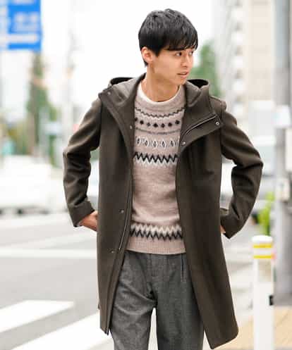 ◆ON/OFFシーンで活躍する冬定番のスタンドフードコート◆冬定番のメルトン素材を使用したフーデットコート。首元は少し襟高のスタンドフード仕様で防寒も意識し、着丈を長く設定しカジュアルなデザインながらどことなくシックな雰囲気になる様、仕上げています。ビジネス・カジュアルシーン両方で着用出来る冬のマストアイテムです。※44 Sサイズと52 XXLサイズはWEB・一部限定店舗販売です。