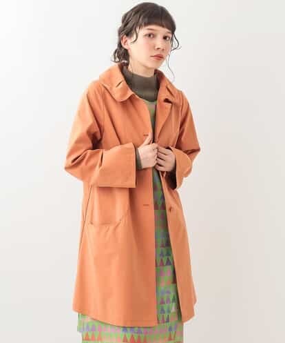 ホコモモラらしいオリジナリティ溢れるくるみボタンがアクセントになったステンカラーコート。タックを加えたふっくらとした襟が可愛らしさをグレードアップしてくれます。ラウンド切り替えからのポケットやホコモモラらしいディテールがたっぷりのコートです。※裏地付きmodel:H167 B80 W58 H87 着用サイズ:M