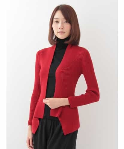 全体に入ったリブ編みが体にフィットするカーディガンです。キュっと締まったウエストから広がる裾と、アシンメトリー風なドレープがポイントのアイテムです。薄手のカットソーやキャミソールをインナーに合わせるのがおすすめです。 model:H170 B80 W60 H86 着用サイズ:40