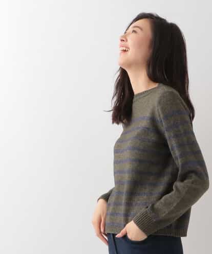 【日本製】ボーダーニット カーキ 42