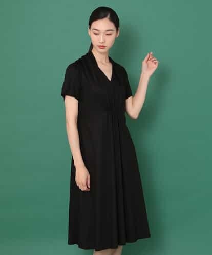 伸縮性があり、とろみのあるジャージー素材で仕立てたハーフスリーブドレス。ややシェイプされたウエストとセンターに寄せたギャザーが立体感な細かいドレープを表現します。ネック後ろはまるでストールを首から下げたようなデザインで、深く開いたVネックも魅力です。大人な女性らしく、リゾートなどのリラクシーなシーンにもおすすめなアイテムです。model:H173 B80 W58 H84 着用サイズ:M