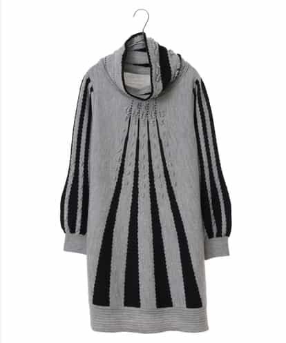 凹凸感のあるモチーフと、引き返し編みを駆使したチュニック丈のニットプルオーバー。袖口にかけてボリュームを持たせたスリーブや、左右アシンメトリー編みで表現した衿がポイント。ランダムにあしらった立体感のあるディティールに、バックの身頃はプレーンな編地を組み合わせることでメリハリのあるアイテムに仕上がっています。model:H170 B80 W59 H85 着用サイズ:M