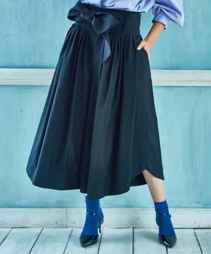 たくさんのタックとギャザーが作り出す立体的なドレープが魅力のガウチョパンツ。ハイウエストに仕上げたエレガントなワイドシルエットに、ウール仕立てのタイプライター素材がハリのある美しいシェイプを魅せてくれる一着です。イレギュラーカットになったヘムや、付属のリボンでアレンジを楽しめるのもポイントです。パンツインしてメリハリのあるスタイリングがオススメです。※裏地付き