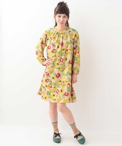 風合いのある手描きタッチのフラワーモチーフが存在感のあるドレス。ゆったりとしたAラインシルエットに衿ぐりや袖口にギャザーを寄せたデザインがフェミニンなドレスです。ラグランスリーブがカジュアルな雰囲気もプラスしたバランスの良い一着に仕上がっています。同じテキスタイルで仕立てたブラウス【GJBDD41170】、スカート【GJHDD41170】もオススメです。※バックファスナーmodel:H167 B80 W58 H87 着用サイズ:M
