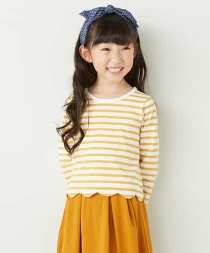 [100-130]裾スカラップボーダーカットソー[WEB限定サイズ] マスタード 100
