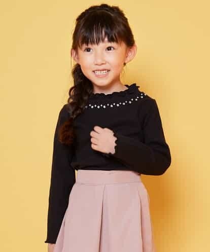 ◆着回ししやすいシンプルTOPS♪襟元のフリルとビジューがポイント◆衿元のビジューが華やかなテレコカットソーです。テレコ素材でも体のラインを拾いすぎないシルエットと、衿の可愛らしいフリルテクニックに拘りました。フレアスカート合わせの王道スタイルはもちろん、ジャンパースカートのインナーとしても重宝します。※100サイズはWEB・一部店舗限定販売です。同じデザインの140〜160サイズございます。140・150サイズ商品コード:KJKJE27034160サイズ商品コード:KJKJF27039