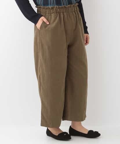 季節感溢れる、まるでスウェードのようなピーチスキン素材がポイントのワイドパンツです。しっとりとした肌に吸い付くような肌触りで、秋冬らしい着こなしが叶うパンツです。ウエストはゴム仕様でギャザーを寄せ、トップインもしやすく、ベルトループ付きなのでお持ちのベルトでウエストマークも可能です。ブーツやパンプスを合わせた大人コーデがお薦めなアイテムです。