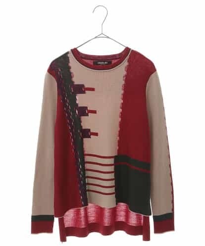 インターシャ幾何柄ニットプルオーバー レッド 11