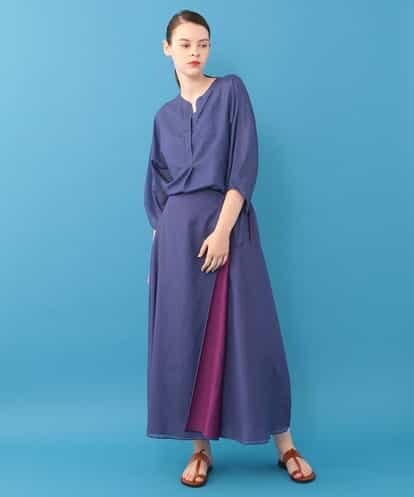 コットンの柔らかさとシルクの繊細さが際立つリバーシブル仕立てのラップスカートです。ポップな配色がおしゃれに決まるバイカラー仕立てのスカートはコーディネートにぴったり。すっきりとしたウエストリボンがさりげないアクセントに。軽やかな風合いがこれからのシーズンにぴったりなスカートです。同ラインで仕立てたブラウス【GBBGE06210】もおすすめです。※アンダースカート付き、バックファスナーmodel:H170 B80 W58 H81 着用サイズ:M