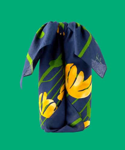 花のプリントが華やかに映える風呂敷。サイズも約97センチと二四巾と大きく、お遣い物・贈り物・プレゼントや お弁当包みなどさまざまなシーンでお使いいただけます。またコンパクトに畳み、旅行・お出掛け時にバックの中へも最適です。シビラならではカラー配色がぱっと目を引く1枚です。※箱入り
