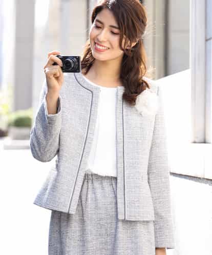 【セットアップ対応】ツィードノーカラージャケット[WEB限定サイズ] ライトグレー 40