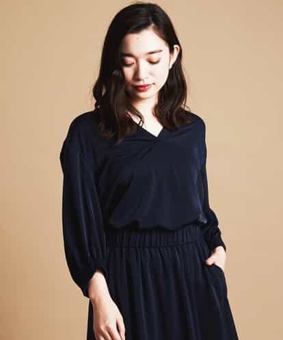 【セットアップ対応/洗える】パウダーサテンパフスリーブブラウス(ネイビー・キャメル・ライトグレー) ネイビー 38