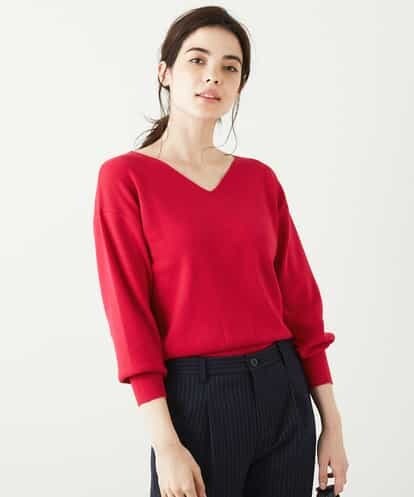 ドロップショルダーにゆったりと開けたVネックが抜け感たっぷりのニットプルオーバー。 袖と裾を細いリブでキュっと絞ったデザインが全体のフォルムを丸くコンパクトな雰囲気に仕上げます。 ドロップショルダーが程よいヌケ感を演出し、女性らしいシルエットで着て頂けるアイテムです。 軽量なのに暖かくてやわらかいマイクロアクリルファイバーとレーヨン繊維をブレンドした吸湿発熱性、ソフト感を持つ快適素材もポイントです。 model:H172 B81 W58 H86.5 着用サイズ:M