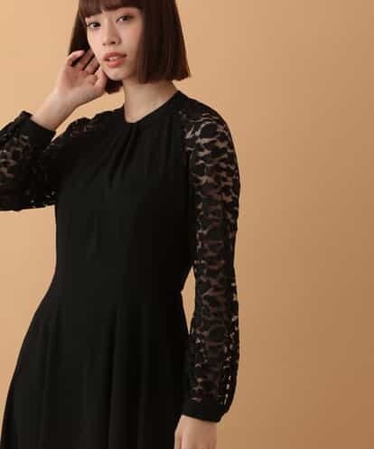 スリーブからバックにかけてレースをドッキングしたドレス。ネックにタックを取ったシックなドレープに、複雑に切り替えを組み合わせたボリュームのあるフレアシルエットが女性らしさをさらに引き立ててくれる一着です。バックはレースにスリットを入れ、スカート部分もボリュームを抑えてすっきりと仕上げました。※バックファスナーmodel:H164 B82 W59 H88 着用サイズ:M
