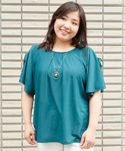 【大きいサイズ】レーススリーブブラウス グリーン フリーサイズ